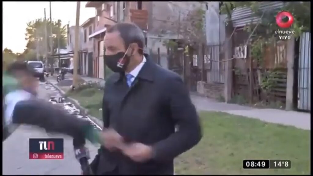 El canal emitió el video en el noticiero de esta mañana, donde los colegas del periodista repudiaron el hecho.