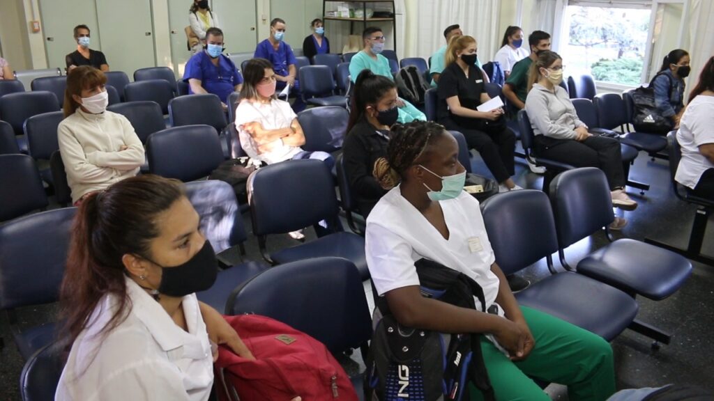 Esta mañana, luego de la recepción en el Auditorio del Hospital se les brindó una charla explicativa de normativas y protocolos institucionales, y se dio una capacitación sobre la adecuada utilización de los elementos de protección personal. Posteriormente recorrieron las áreas donde desempeñarán sus funciones.