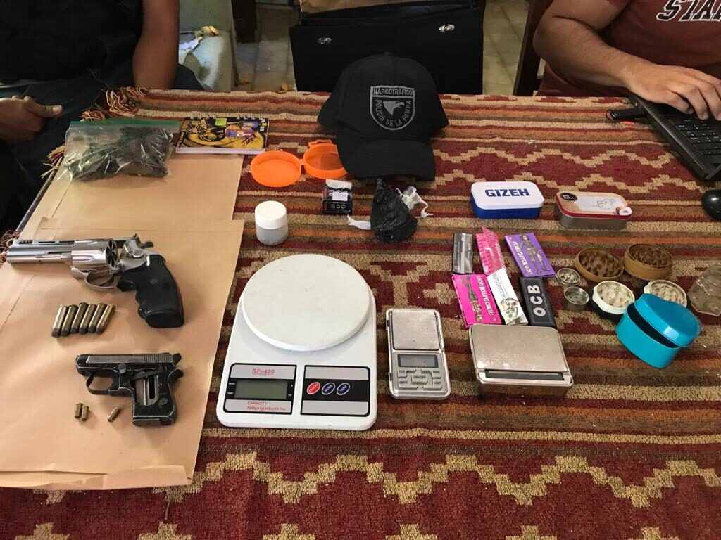 En la inspección de la vivienda personal del A.C.O.L.N., encontraron elementos y pruebas que comprometerían a esta pareja en la manipulación de estupefacientes, procediendo al secuestro de 108 gramos de marihuana, dos balanzas de precisión, elementos para cortar y dosificar droga para su venta al menudeo, ocho plantas de marihuana que se encontraban resguardadas con una jaula construida con hierro y otras medidas de seguridad para evitar su sustracción, 383 semillas de la especie “Cannabis Sativa”, dos revólveres uno calibre 357 y el restante 22 milímetros.