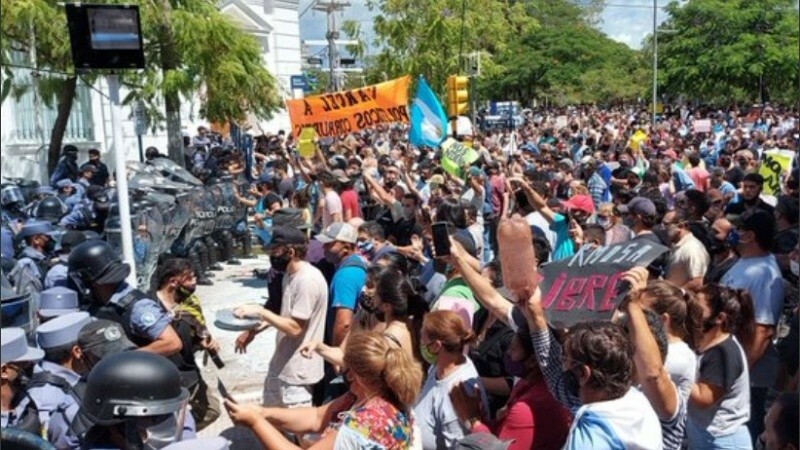 Las protestas en los alrededores de la Casa de Gobierno provincial derivaron en enfrentamientos entre manifestantes y policías quienes respondieron con gases y balas de goma.