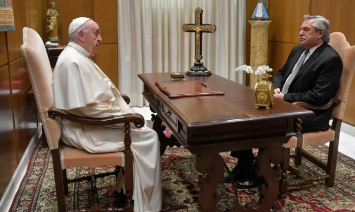 El presidente Alberto Fernández dijo hoy que, en el encuentro que mantuvo esta mañana con el papa Francisco en el Vaticano, el pontífice le “expresó su idea de apoyarnos en todo lo que pueda” y sostuvo que se trató de “un muy lindo encuentro”.