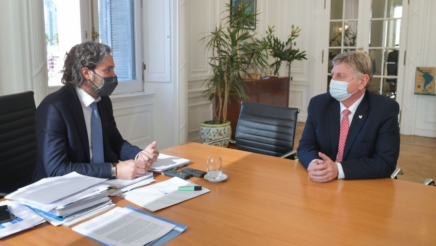 El gobernador, Sergio Ziliotto, se reunió hoy en Casa Rosada con el jefe de Gabinete de Ministros, Santiago Cafiero, para conversar sobre distintos temas, entre ellos, el importante avance de la campaña de vacunación y los signos de reactivación de la economía a nivel provincial y nacional.