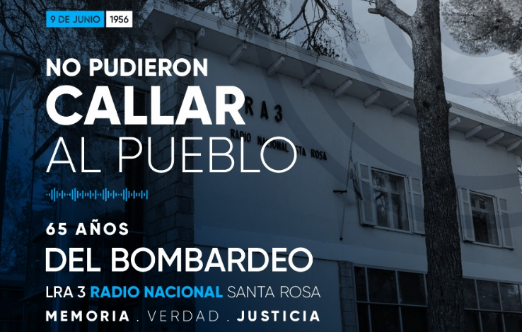 Este miércoles se cumplen 65 años del bombardeo a la planta transmisora de LRA3 Radio Nacional Santa Rosa, ocurrido el 9 de junio de 1956. Ese día, aviones de la Fuerza Aérea sobrevolaron la ciudad y descargaron sus bombas en inmediaciones del edificio de la Avenida Alfredo Palacios.
