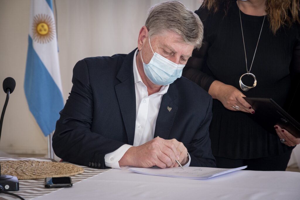 El ministro Kulfas y el primer mandatario pampeano firmaron el Acta de Intención para la Generación de Empleo por un monto de $ 235.000.000 (no reintegrables) que invertirá a través del Fondo Nacional de Desarrollo Productivo -FONDEP- destinado al pago de contribuciones patronales de empresas del sector industrial y agroindustrial que realicen nuevas contrataciones.