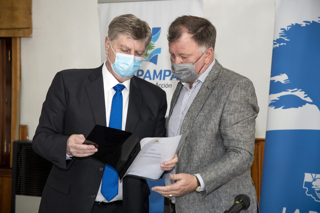 El gobernador Sergio Ziliotto y el Intendente Jorge Cabak sellaron un convenio que le permitirá al municipio ejecutar obras de asfalto en el casco urbano por $ 20 millones de pesos. Además, el mandatario pampeano le entregó el proyecto para avanzar en la repavimentación de los accesos norte y sur, en los que la Provincia invertirá más de $ 11 millones.