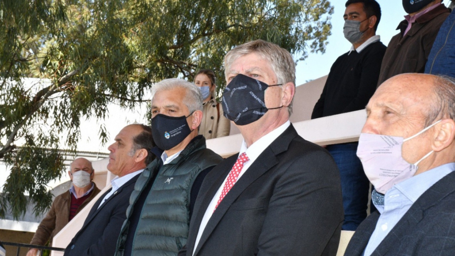 El Gobernador, junto al ministro nacional y demás funcionarios, fueron recibidos por el titular de la Asociación Agrícola Ganadera, Marcelo Rodríguez, el presidente de la Confederación de Asociaciones Rurales de Buenos Aires y La Pampa, Horacio Salaverri, y otros dirigentes del sector.