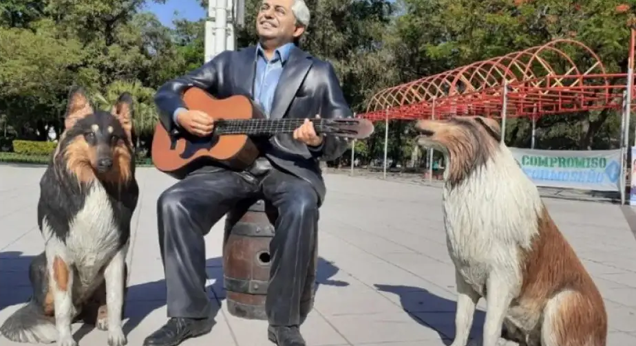 El pasado martes, los formoseños se sorprendieron al encontrarse con estatuas del presidente Alberto Fernández y sus perros Dylan y Prócer en la plaza principal de la capital.