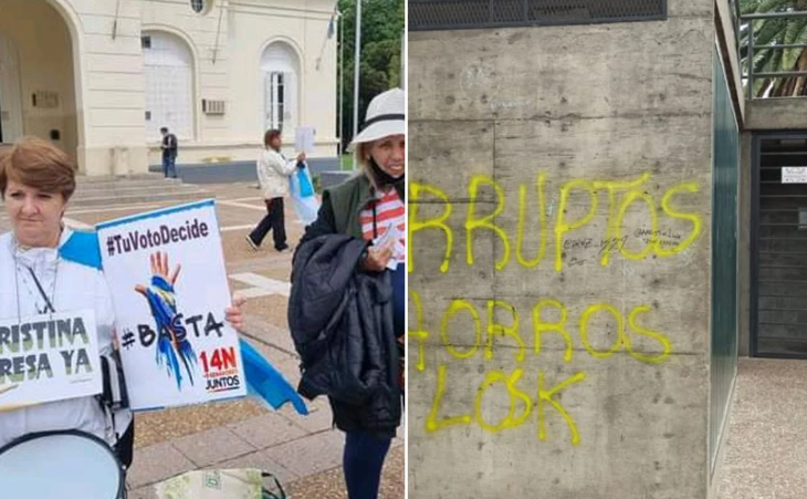 Un grupo de aproximadamente 15 mujeres llegó a la ciudad de General Pico en un micro con carteles en sus laterales que decían “Corruptos, chorros los K”.