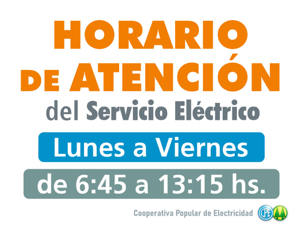La CPE informa que desde el próximo miércoles 1 de diciembre los trámites presenciales vinculados al área de energía se podrán realizar en Santa Rosa, de lunes a viernes, de 6:45 a 13:15 horas en la sede central, en Raúl B. Díaz 218, y el Centro de Atención “Carlos Lorenzo”, en José Luro y Perú.