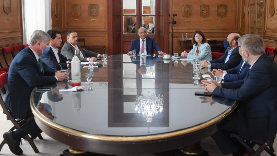 El mandatario participó esta mañana de una reunión en Casa Rosada con el jefe de Gabinete, Juan Manzur, con el ministro del Interior, Eduardo “Wado” de Pedro y con varios gobernadores justicialistas para analizar el tratamiento parlamentario de la Ley de Leyes.