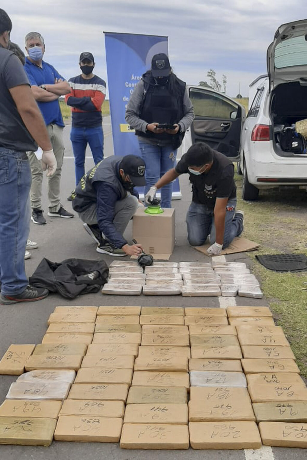 Con la participación del can detector de estupefacientes se realiza la primera inspección por el exterior, marcando la posible existencia de estupefacientes en el vehículo, por lo cual se procedió a una minuciosa requisa del automóvil y sus ocupantes, logrando el secuestro de 70,791 kgs. de marihuana (dispuestos en “panes”) y 872 gramos de cocaína, dinero en efectivo, teléfonos celulares y otros elementos de interés para la investigación. El vehículo fue decomisado en el marco de la misma causa.