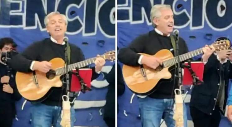 En un acto del Movimiento Evita por el 25 de Mayo, el presidente Alberto Fernández se subió al escenario para tocar la guitarra e interpretar la canción “Solo se trata de vivir” de Lito Nebbia.