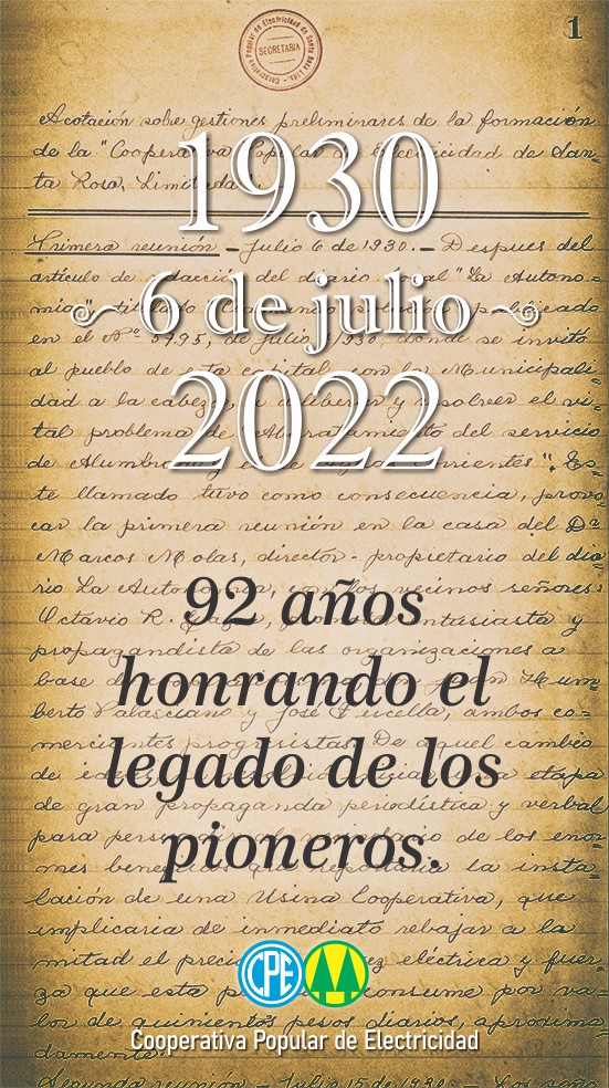 Este miércoles 6 de julio la Cooperativa Popular de Electricidad cumple 92 años desde la firma de su Acta Fundacional, el 6 de julio de 1930. Julio es, además, el Mes de la Cooperación y estará lleno de festejos. En ese marco, los talleres de la CPE ofrecerán varias actividades abiertas para el público en general.