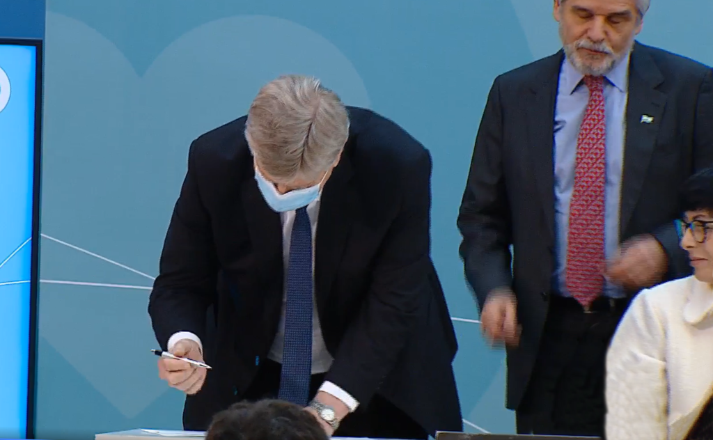 Durante un acto encabezado por el presidente, Alberto Fernández, el gobernador Sergio Ziliotto firmó esta mañana un convenio con el ministro de Ciencia, Tecnología e Innovación de la Nación, Daniel Filmus, por $ 899 millones. El acuerdo permitirá la concreción de un Centro Interinstitucional de Bioeconomía basada en el conocimiento – CISBio La Pampa- y la adquisición de cuatro equipamientos de mediano y gran porte.