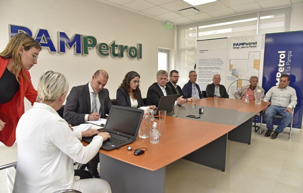 En la sede de la empresa estatal pampeana la presidenta de Pampetrol, María Roveda, recibió al Gobernador; al intendente de Victorica, Hugo Kenny; al secretario de Energía y Minería, Matías Toso; y a funcionarios provinciales; acompañada por los integrantes del directorio: Julio Bargero, Luis Campo, Carlos Santarossa y Hugo Pérez.