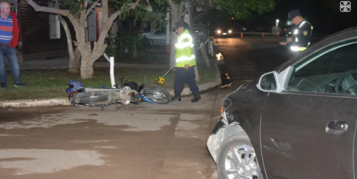 El rodado mayor, un Chevrolet Prisma, circulaba por la calle Acha, cuando al llegar a la intersección con Pasteur no pudo evitar chocar con la motocicleta que circulaba por la lutima arteria citada.