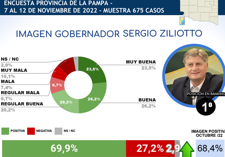 Con un 69,9% de imagen positiva (en octubre había sido del 68,4%), Sergio Ziliotto encabeza el ranking del mes de noviembre.