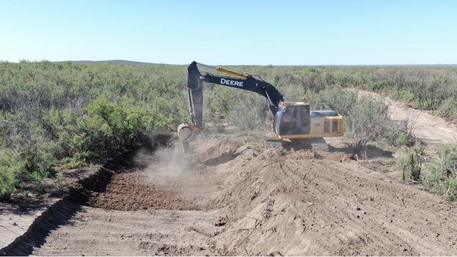 Esta es una obra que se realiza por administración, con recursos del Gobierno provincial a través de la Dirección Provincial de Vialidad, en forma conjunta con la Secretaría de Recursos Hídricos y el municipio de Algarrobo del Águila. La misma avanza con normalidad, con un ritmo reducido en ciertos sectores donde la cobertura vegetal era mayor y corrigiendo la deposición del material removido (se redujo la altura de los montículos).