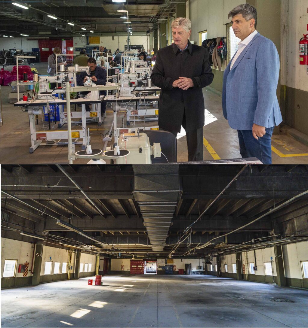 Luego un proceso de selección se adjudicó el edificio, que tiene la posibilidad de subdividirse, a dos empresas: Calzatex y Living Confort. La primera se dedica a la confección de calzado y la segunda la fabricación de muebles.