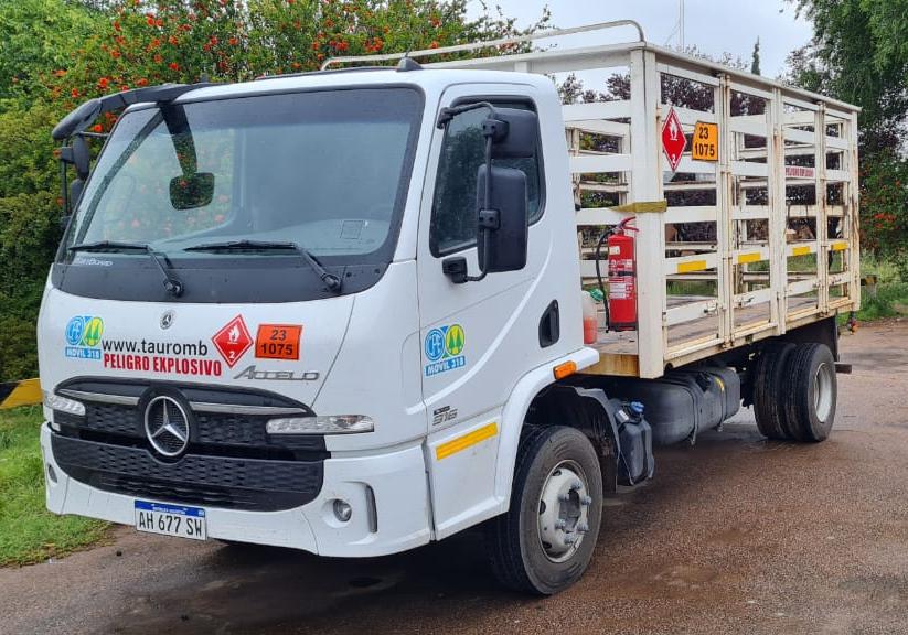 - Un Mercedes Benz 916/36, con caja reforzada para el transporte de garrafas y cilindros, que triplica la capacidad de carga respecto al vehículo anterior, pasando de 3.000 a 9.000 kilogramos.