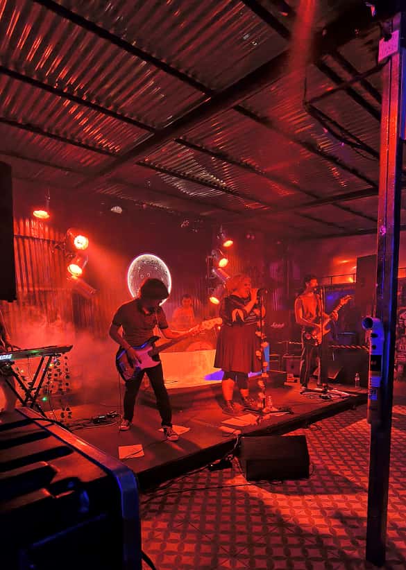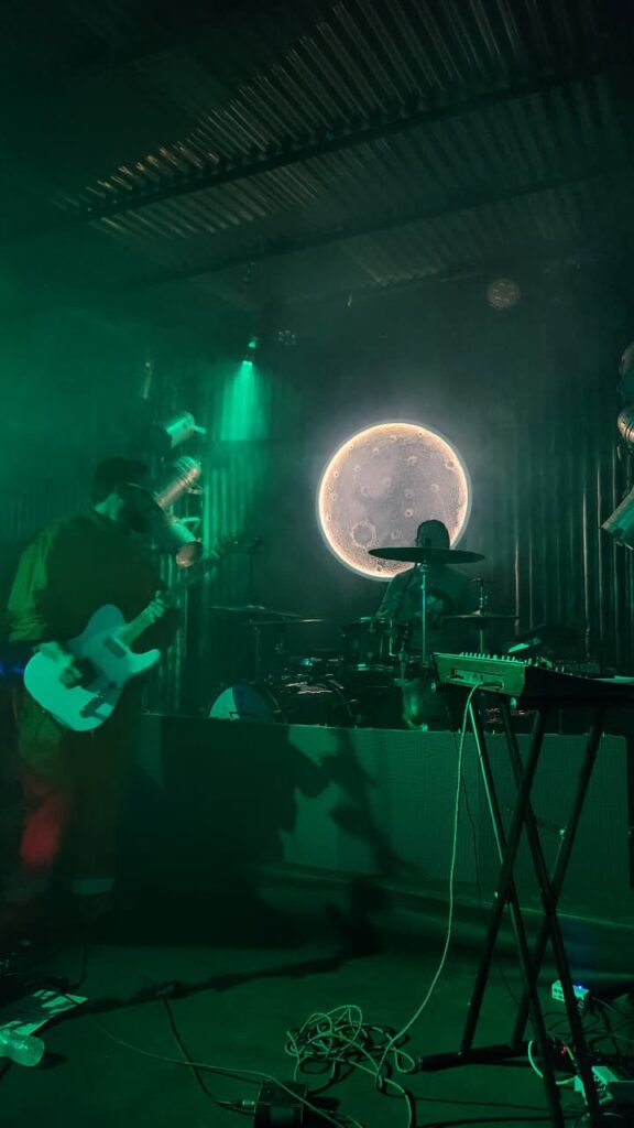 El viernes de 7 noviembre en Ruda ingresan al escenario en fila india, irrumpen el aire del local vestidos con mamelucos futuristas, al mejor estilo Devo o Los Encargados, generando un impacto inmediato con su propuesta. Posteriomente, León me dice que “hay un gran disfrute en la producción de los shows”. Y es que tienen todos la misma jerarquía en pos de construir un show cuidado en la totalidad de la estética y en el sonido de canciones, y finalmente lo más importante está en la conexión emocional como vehículo. Una canción puede comenzar tímida, casi íntima, y terminar en un estallido donde cada persona se reconoce en algo común, aunque no lo pueda nombrar.